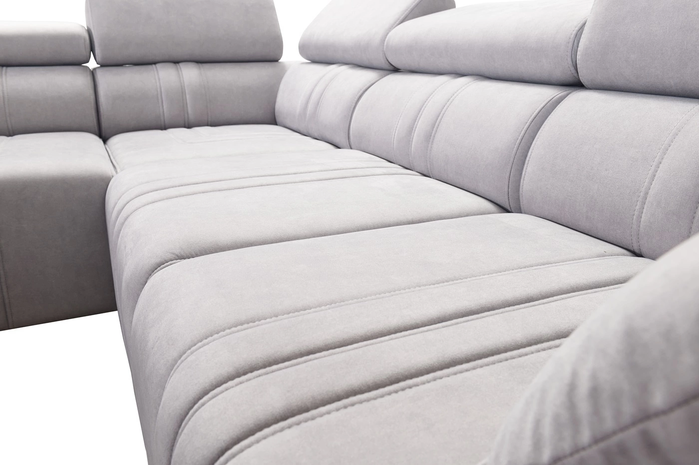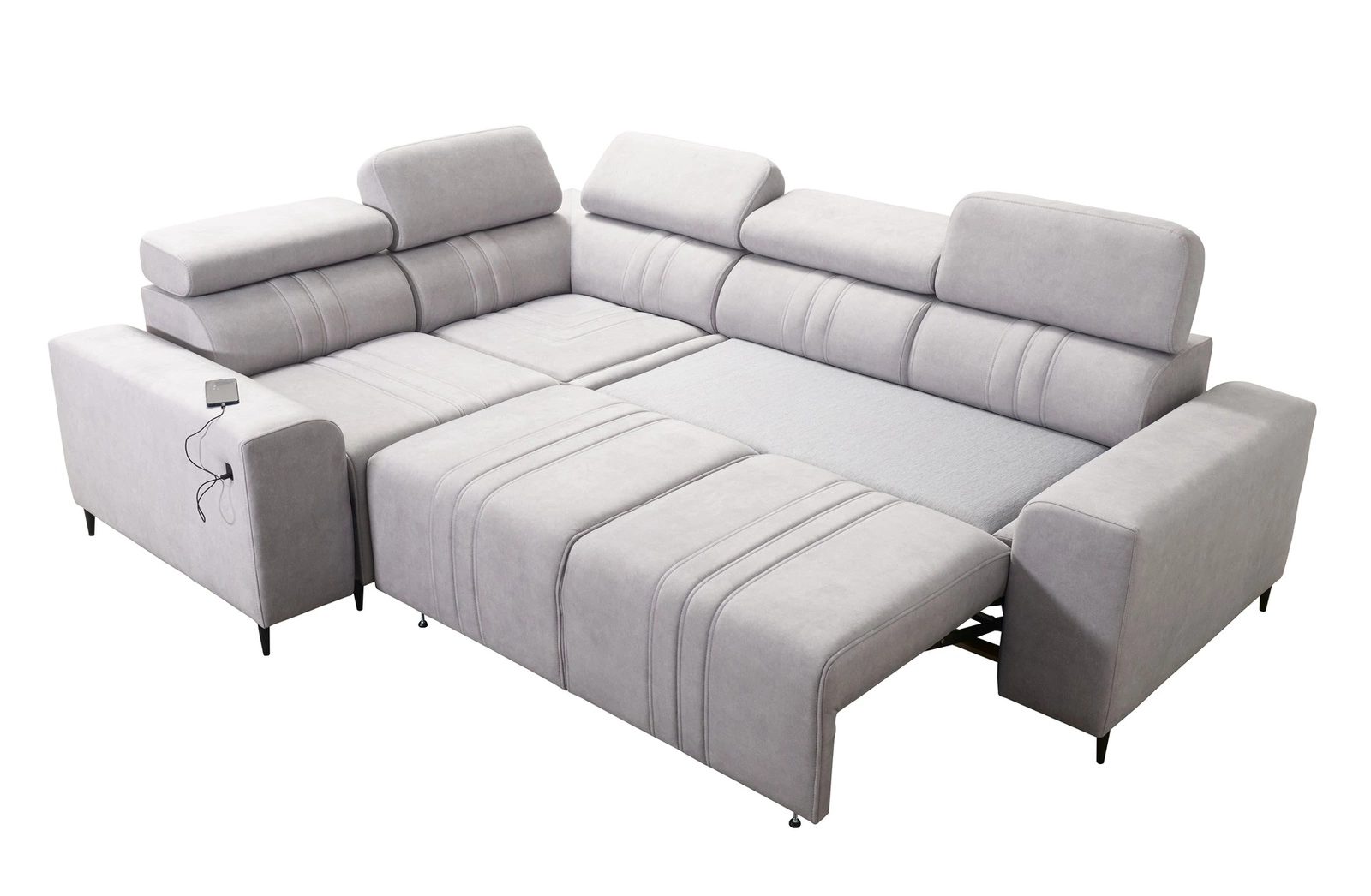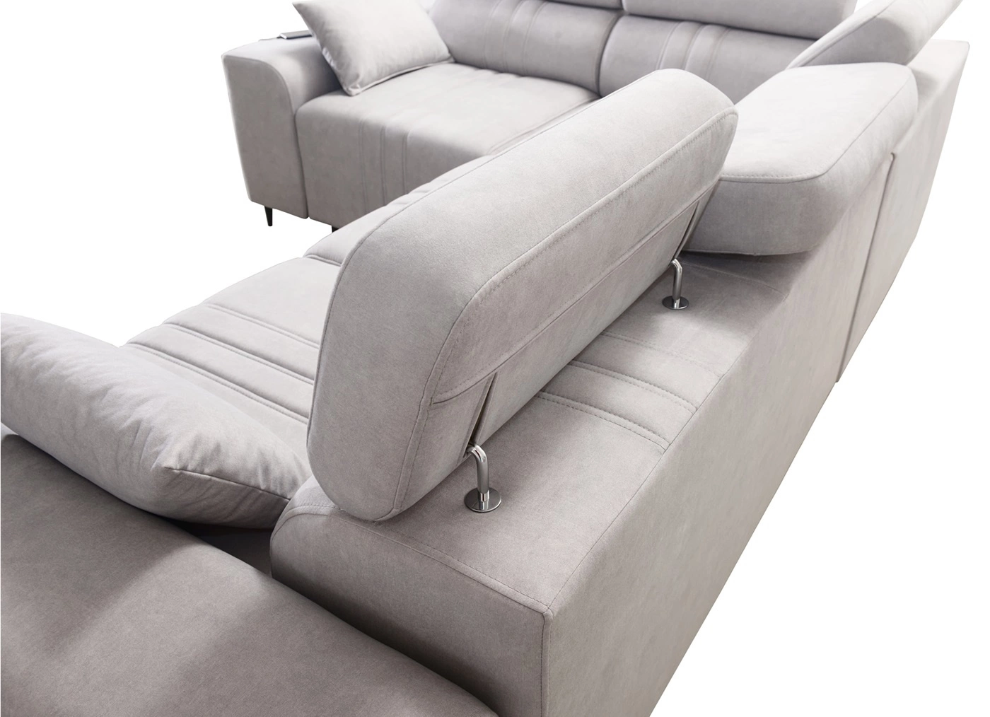 Die Extras dieses Möbels, die alle Benutzer schätzen werden, sind der Bettzeugbehälter, die verstellbaren Kopfstützen und die USB-Ladebuchse an der Seite des Eckmöbels.