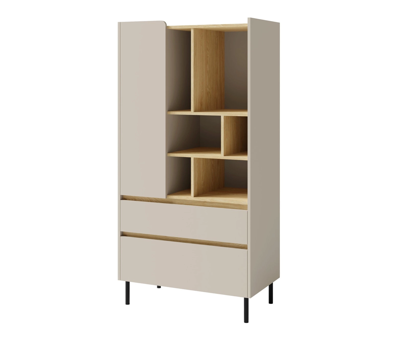 Bücherregal mit Schubladen Paguro 80 cm sandbeige/geölte Eiche elegantes Design stabile hohe Beine Bücherregal mit Türen und Schubladen