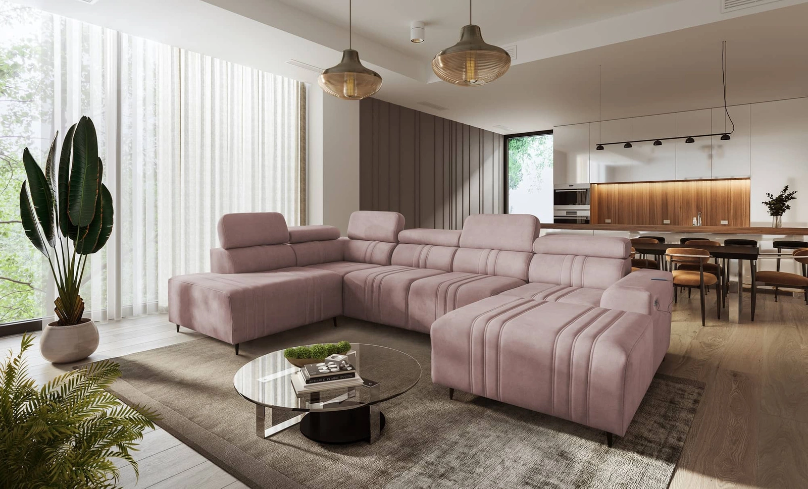 Eckeinheit Castel VI in Rosa mit verstellbaren Kopfstützen ist ein äußerst elegantes Möbelstück mit interessanter Oberfläche.