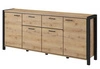 Kommode mit Schubladen Aktiv ist das ideale Möbelstück für moderne Innenräume in leuchtenden Farben, aber auch für gedämpfte, industrielle Umgebungen. Das Vorhandensein der Kommode wird zu einem stilvollen Abschluss des Raumes und verleiht ihm einen besonderen Charakter. Fronten in Farbe eiche Stier wurden verbessert durch metallgriffe in Schwarz. Dekorativer Rahmen umgebung der Korpus der Kommode lässt das Ganze sehr eindrucksvoll und elegant wirken. Robust 32 mm dicke Oberteile ist ein weiteres Highlight der Aktiv-Kollektion.