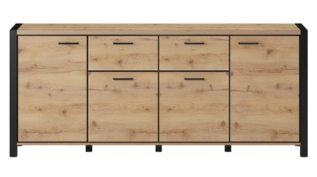 Die Kommode ist konstruiert 4 Türen und 2 Schubladen auszug auf kugelgelagerten Schienen. Außerdem sind die Schubladen ausgestattet mit vollauszugsystem, die den Zugang erleichtern werden. Das verwendete System erhöht den Komfort und die Sicherheit bei der Benutzung der Möbel. Warme Eichenfärbung verleiht dem Raum eine helle und gemütliche Atmosphäre und macht die die Schubladenkommode Aktiv eignet sich perfekt als Kommode für das Wohnzimmer oder als Kommode für das Wohnzimmer. Die Kommode kann auch erfolgreich als Büro- oder Schlafzimmerkommode eingesetzt werden.