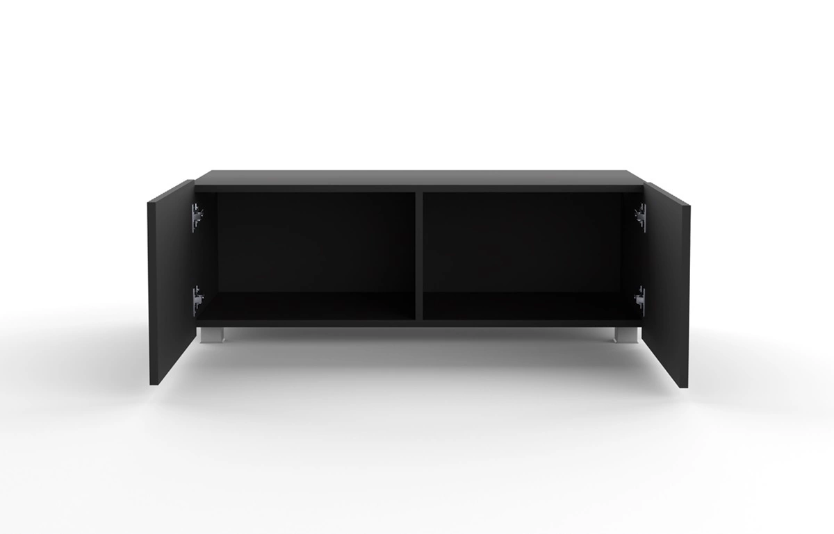 Der Colder RTV-Schrank in Schwarz ist ein modernes Möbelstück, das Ihr Wohnzimmer stilvoll vervollständigen wird.