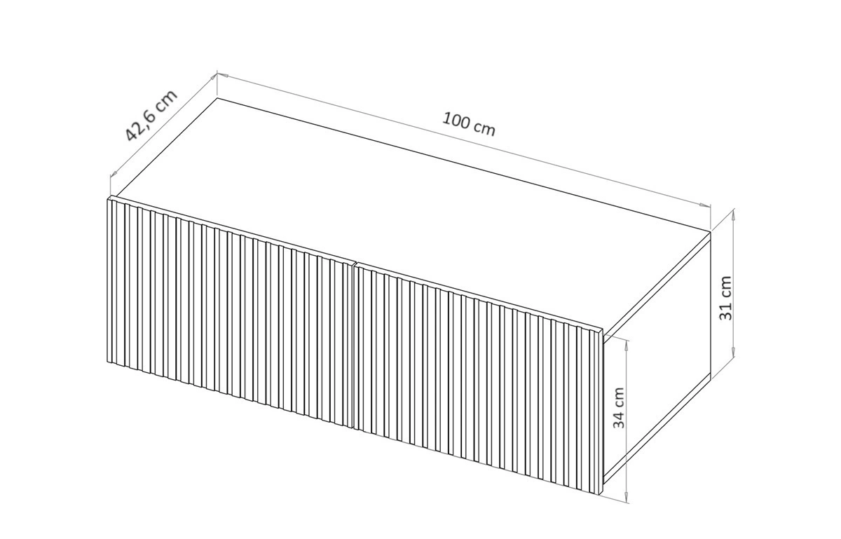 Geriffelte Fronten wurden hergestellt aus mDF. Gehäuse aus hochwertige 16 mm dicke laminierte Platte, die resistent gegen äußere Einflüsse wie Druckstellen, Stöße und unglückliche Kratzer ist. Der RTV-Schrank besteht aus 2 Türen. Zur Standardausstattung gehören scharniere mit Dämpfungssystem. Zeitloses Schwarz findet seinen Weg in anspruchsvolle Arrangements und macht die RTV-Schränke perfekt für helle, moderne Interieurs. Moderne RTV-Schränke, RTV-Schränke im Glamour-Look und RTV-Wandschränke mit eleganter Oberfläche passen perfekt zu jeder Einrichtung.