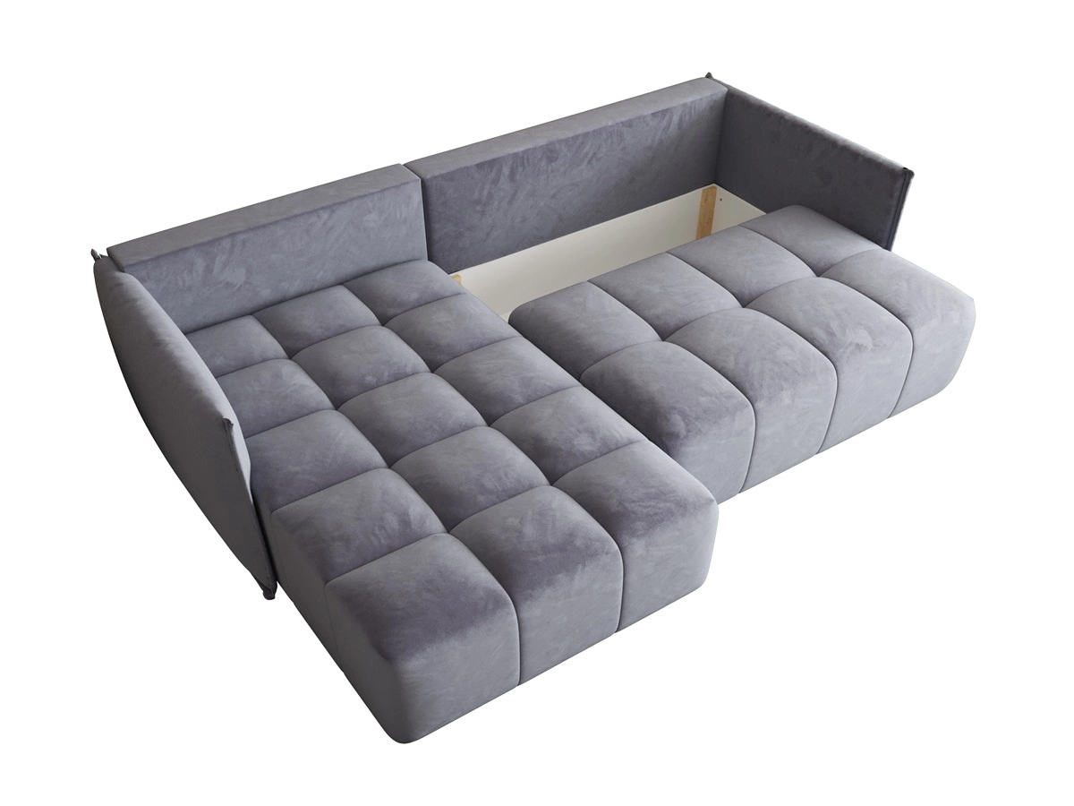 - Das Ecksofa Oroso mit Schlaffunktion ist ein attraktives Möbelstück, das sich in jedem Raum gut einfügen wird. Ecksofa aus weichem Samtstoff mit einer interessanten Struktur, die dem Sofa einen besonderen Charakter verleiht. Der Stoff hat eine hydrophobe