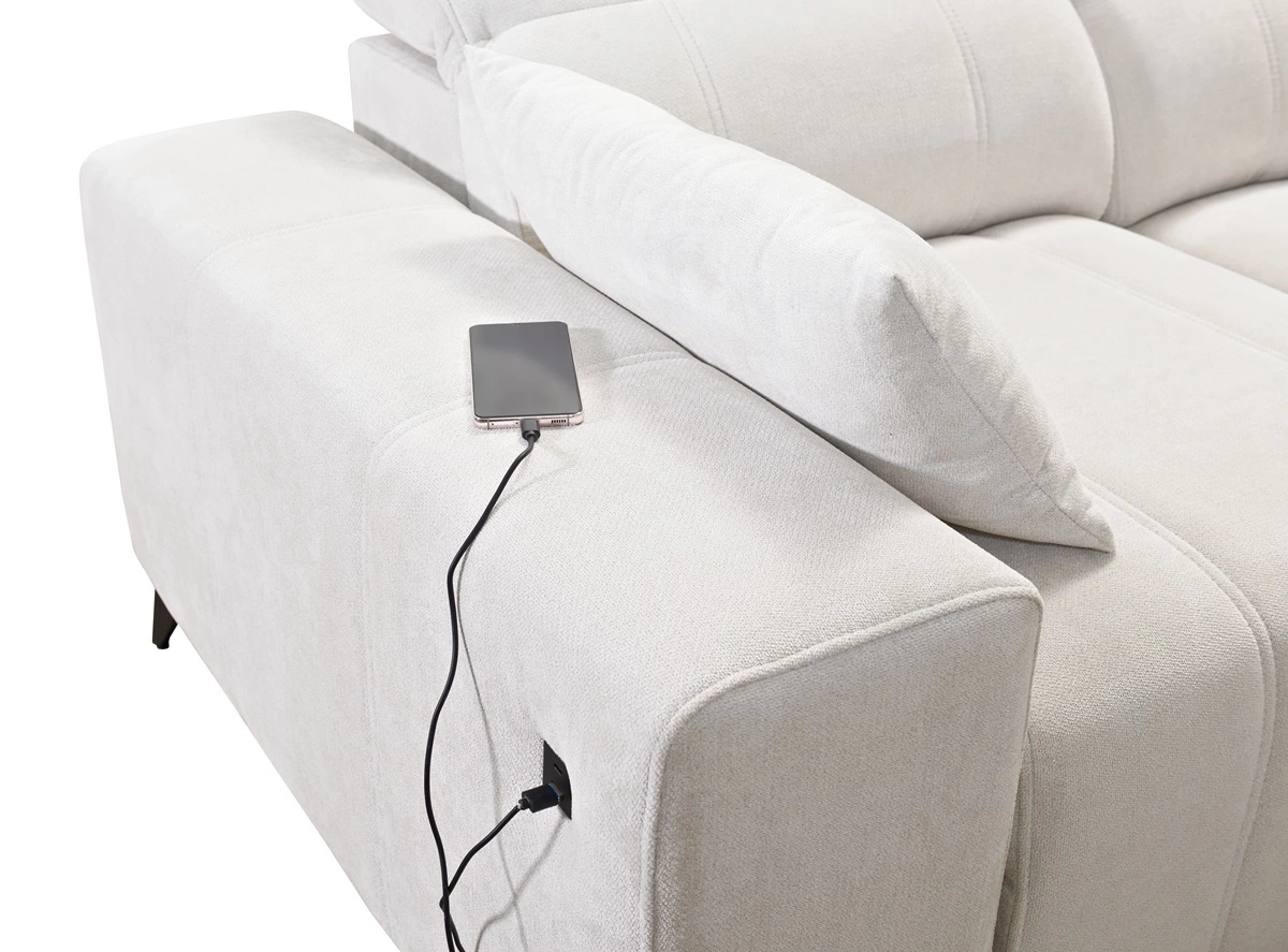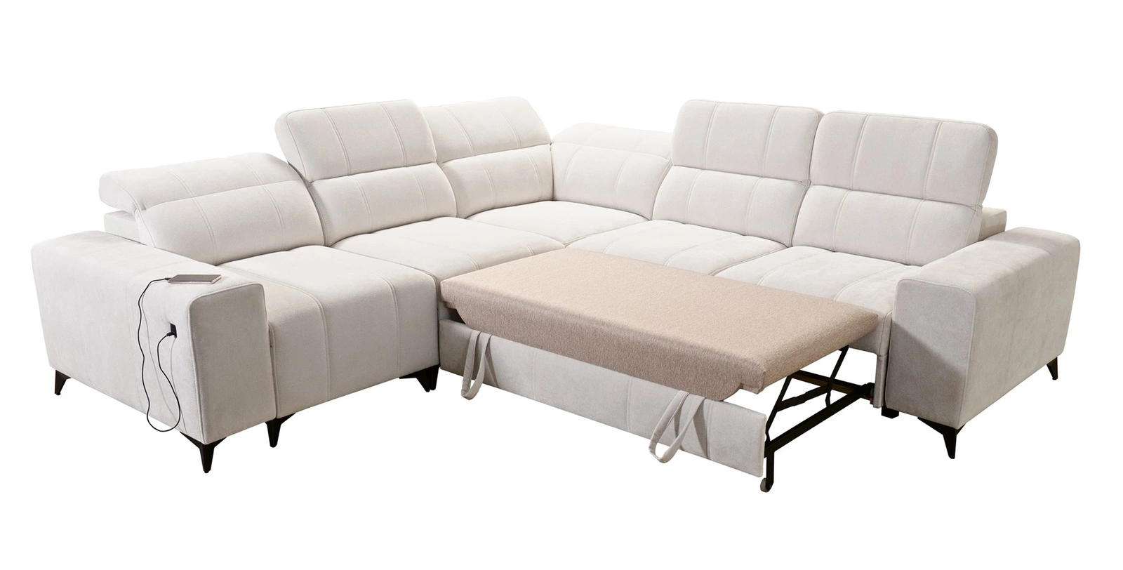 Die Extras dieses Möbels, die alle Nutzer zu schätzen wissen, sind die zwei Bettkästen, die Schlaffunktion und die USB-Ladebuchse an der Seite des Eckmöbels.