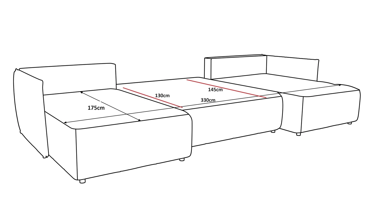 Das Ecksofa mit Schlaffunktion eignet sich dank seiner Abmessungen und seiner breiten Funktionalität ideal als Ecksofa für das Wohnzimmer oder als klappbares Ecksofa für das Gästezimmer. Ein Ecksofa mit Schlaffunktion ist auch eine gute Alternative zu einem Bett im Zimmer der jugendzimmer. Breite der Ecke 342 cm, höhe 88 cm und Tiefe 190 cm. Die Liegefläche des Eckschrankes beträgt 145x330 cm. Die Sitzhöhe des Möbels beträgt 44 cm, und die Höhe der Rückenlehne beträgt 44 cm. Gewellte Federn und T30-Polyurethanschaum ist das Material, aus dem der Sitz der Ecke hergestellt ist. Weich rückenlehnen-Kissen gewährleisten einen hohen Komfort bei der täglichen Erholung, den Sie und Ihre Gäste, die auf diesem einzigartigen Ecksofa sitzen, zu schätzen wissen werden.