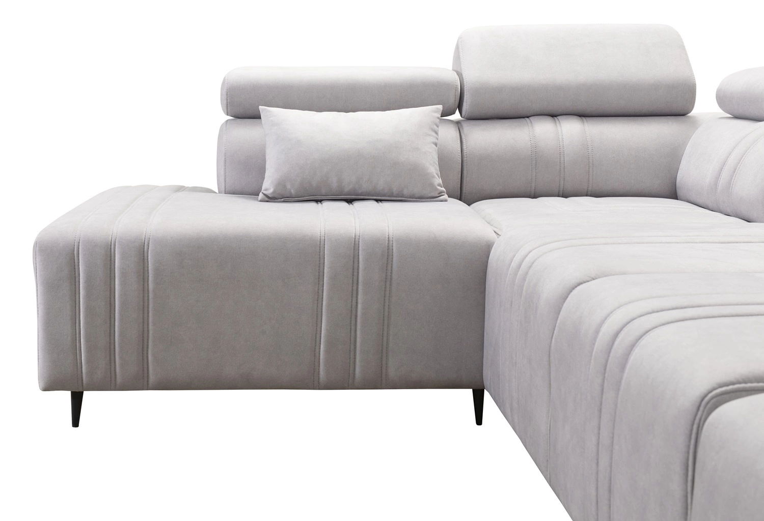 Ecksofa mit Schlaffunktion Castel VII grau braun linksseitig stilvolles Ecksofa mit Bettzeugablage und verstellbaren Kopfstützen
