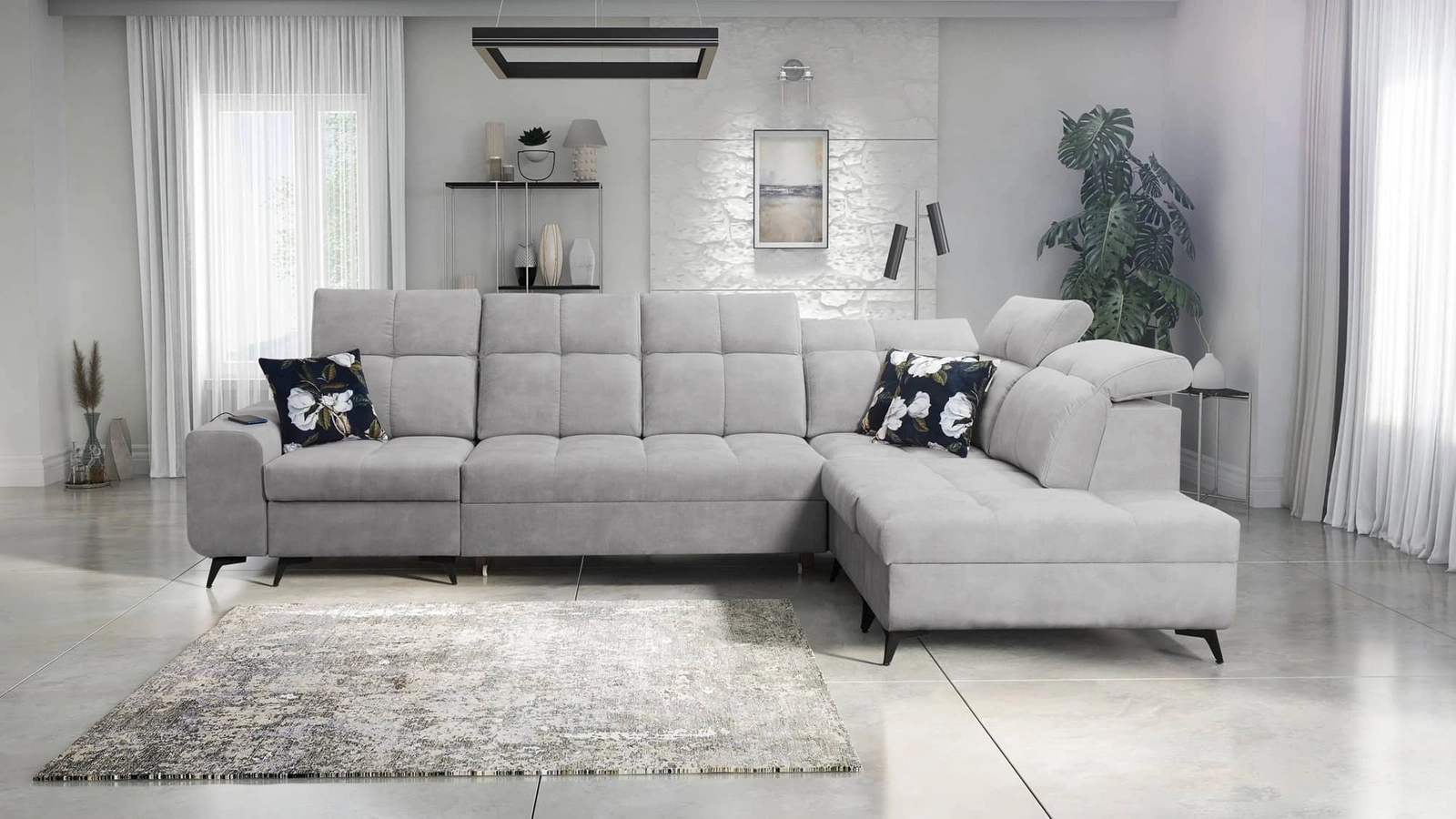 Weitere Ausstattungsmerkmale dieses Möbelstücks, die von allen Nutzern geschätzt werden, sind bis zu drei Bettkästen, verstellbare Kopfstützen und eine USB-Ladebuchse in der Seite des Eckmöbels.