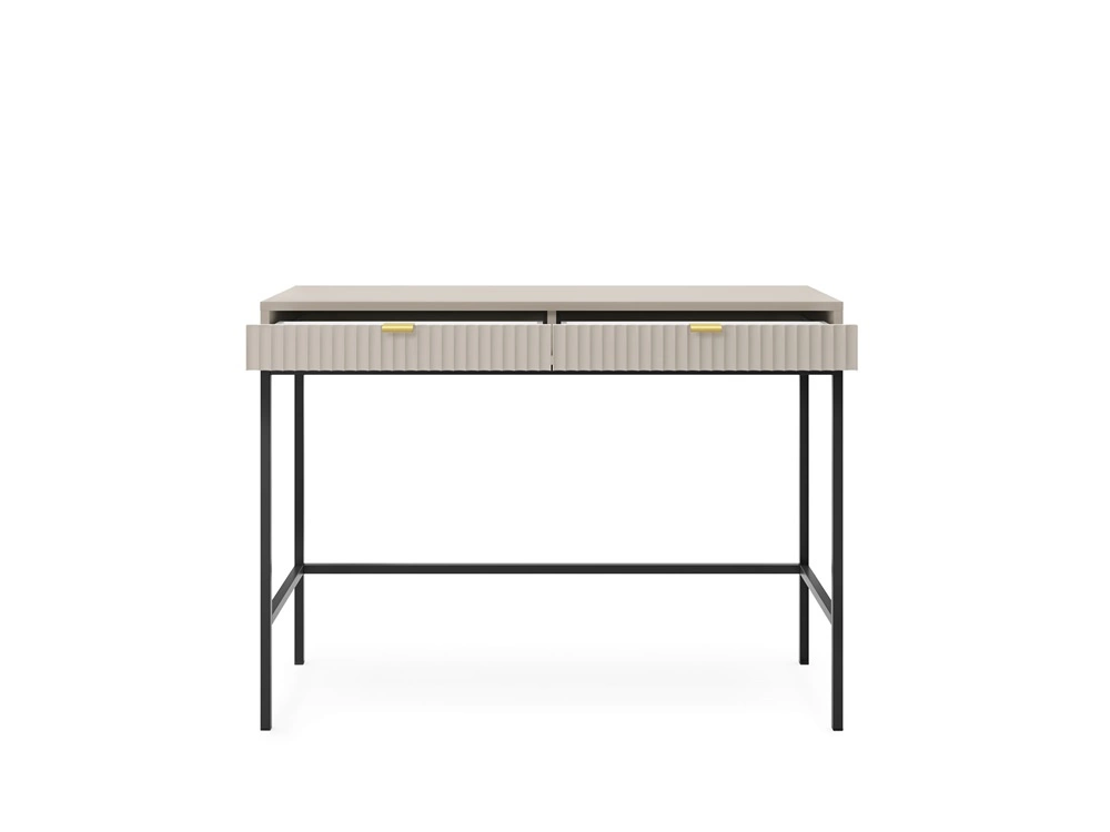 Geriffelt frondos aus MDF 18 mm dick einen besonderen Charme verleihen. Die stilvollen Abschlüsse der Schubladenfronten sind goldfarbene Kantengriffe. Die Struktur der Möbel ist vielfältig schwarze Metallbeine o mattes Finish.