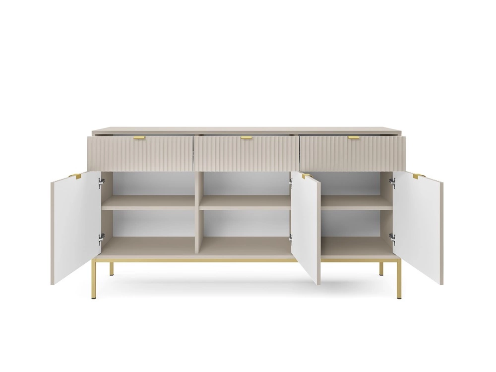 Lovro 154 cm Kommode mit Schubladen beige modernes Design wird Liebhaber ausdrucksstarker Innenräume begeistern goldenes Metallzubehör