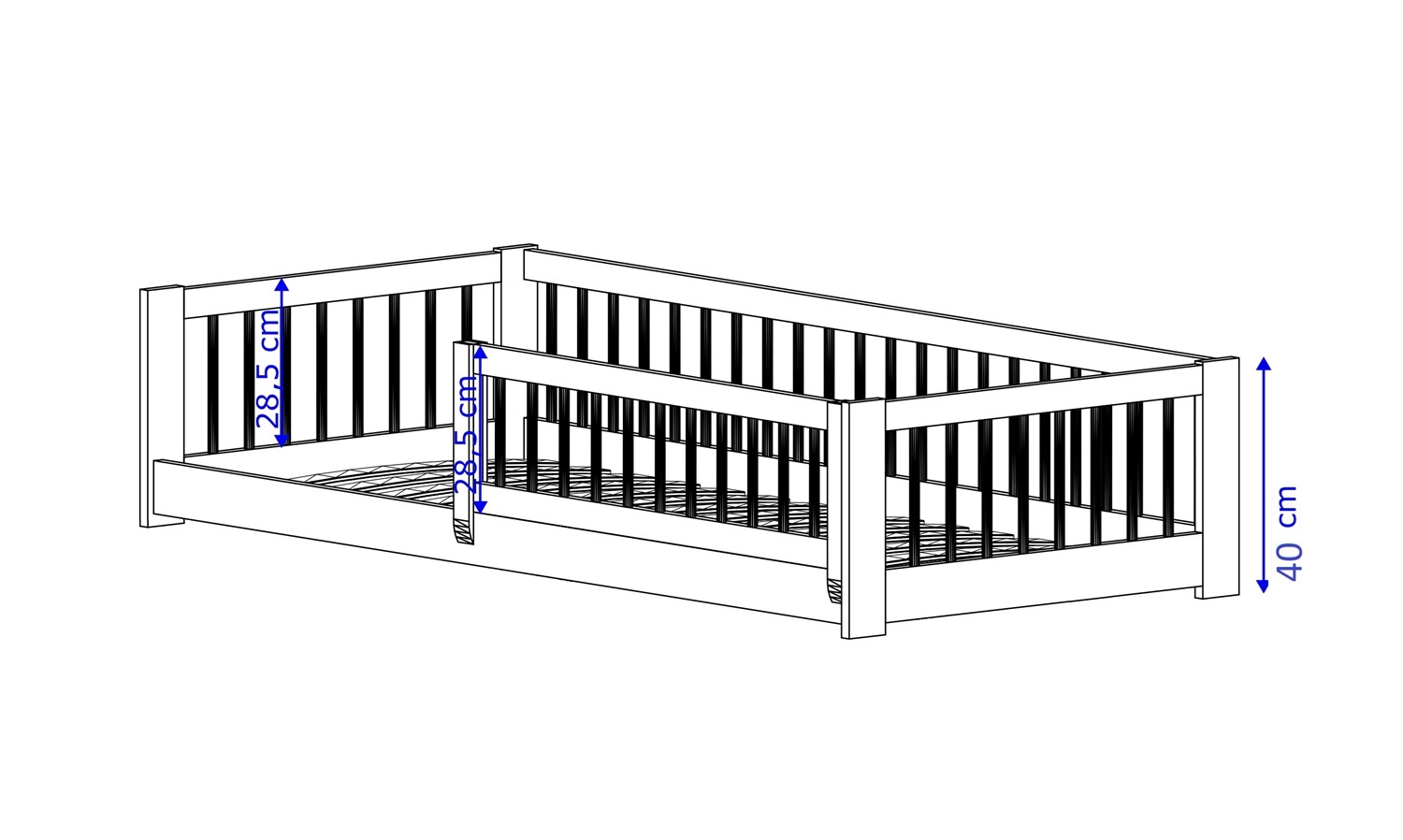 - Das Kinderbett Felipo passt perfekt zu jedem Kinderzimmerstil. Das Kinderbett ist aus massivem Kiefernholz gefertigt. Die direkte Platzierung auf dem Boden erhöht den Komfort und schützt das Kind vor unglücklichen Stürzen.