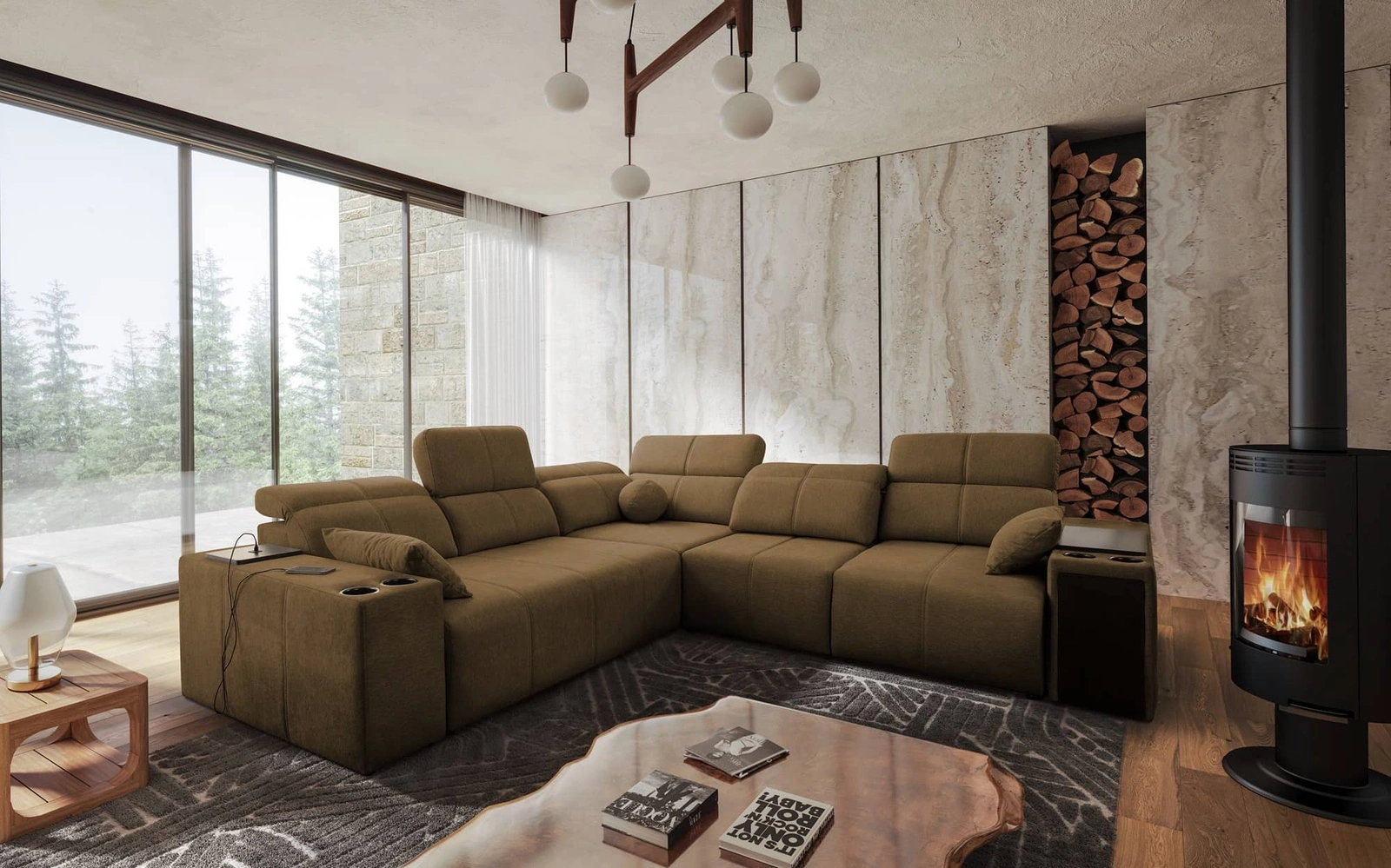 Ecksofa Tesalia III in Braun ist ein äußerst funktionelles Möbelstück mit stilvollem Finish.