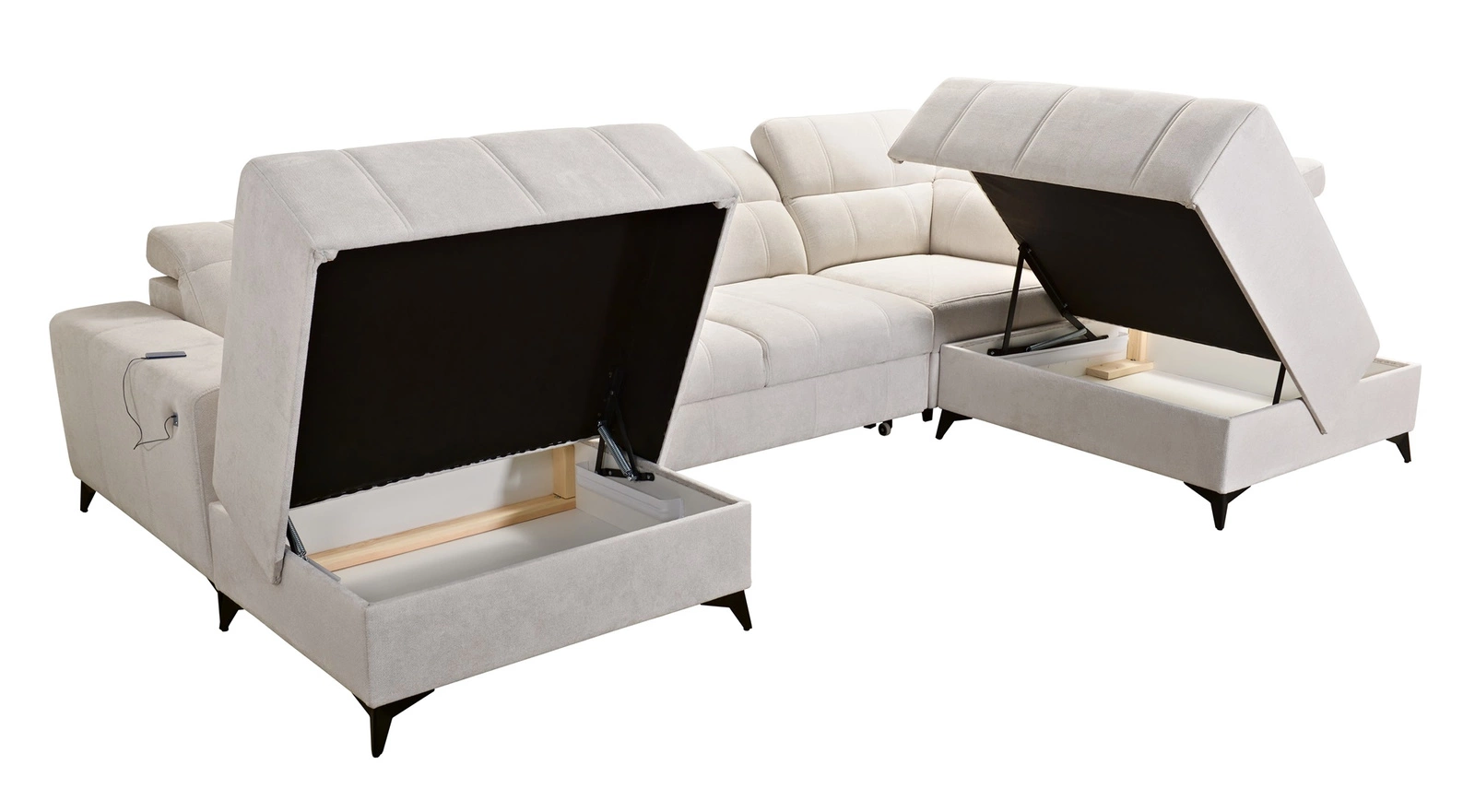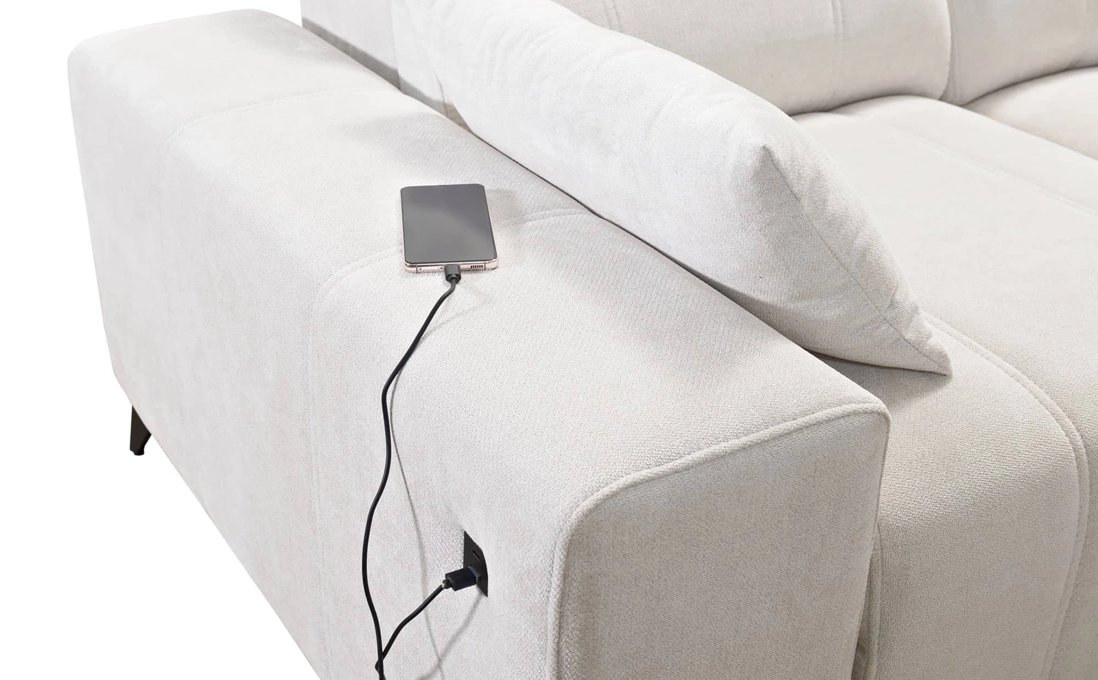 Die Extras dieses Möbels, die alle Nutzer zu schätzen wissen, sind die zwei Bettkästen, die Schlaffunktion und die USB-Ladebuchse an der Seite des Eckmöbels.