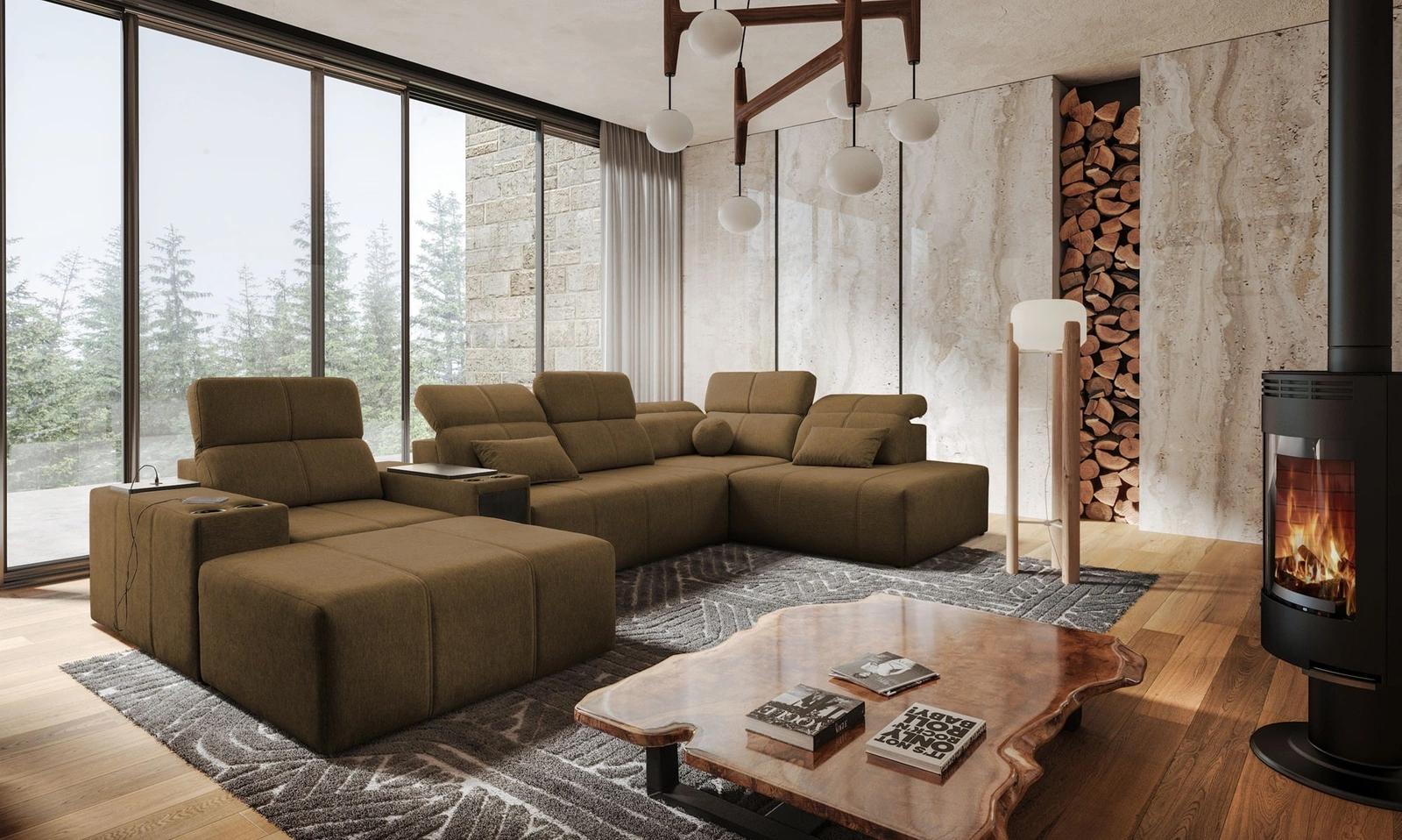 Die Abmessungen der Möbel ermöglichen füllung eines geräumigen Wohnzimmers oder Sitzungssaals. Breite der Ecke 390 cm, maximale Höhe 100 cm und einer Tiefe von 230 cm. Die Liegefläche der Eckeinheit beträgt 138x212 cm. Die Sitzhöhe des Möbels beträgt 43 cm und die maximale Höhe der Rückenlehne beträgt 59 cm. Gewellte Federn und T30-Polyurethanschaum ist das Material, aus dem der Sitz der Ecke hergestellt ist. Rückenlehne mit verstellbaren Kopfstützen ermöglicht es Ihnen, den Winkel der Kopfstützen nach Ihren Wünschen einzustellen und garantiert Ihnen eine bequeme Erholung nach einem langen Tag, die Sie, Ihre Lieben und auch Ihre Gäste, die auf diesem einzigartigen Ecksofa sitzen, zu schätzen wissen werden.