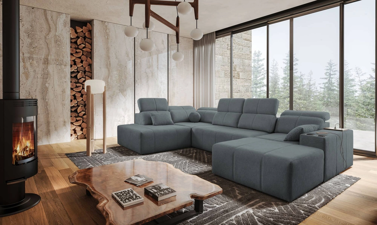Eckeinheit mit Schlaffunktion Tesalia VI verbindet Funktionalität mit einer äußerst stilvollen und eleganten Form. Die gesamte ist bedeckt mit stoff geflochtene Ausführung Verita 88. Eckeinheit zeichnet sich durch sein interessantes Design aus, hohe Verarbeitungsqualität und eine Vielzahl von Extras wie uSB-Ladebuchse und getränkehalter, die noch mehr Komfort und Bequemlichkeit für diese hochmoderne Eckeinheit gewährleisten. Das stilvolle Ecksofa ist mit einer innovativen Funktion angereichert verschiebbare Rückenlehne zur Einstellung der Sitztiefe. Modernes eckdesign wird den höchsten Ansprüchen an Funktionalität und Design gerecht.