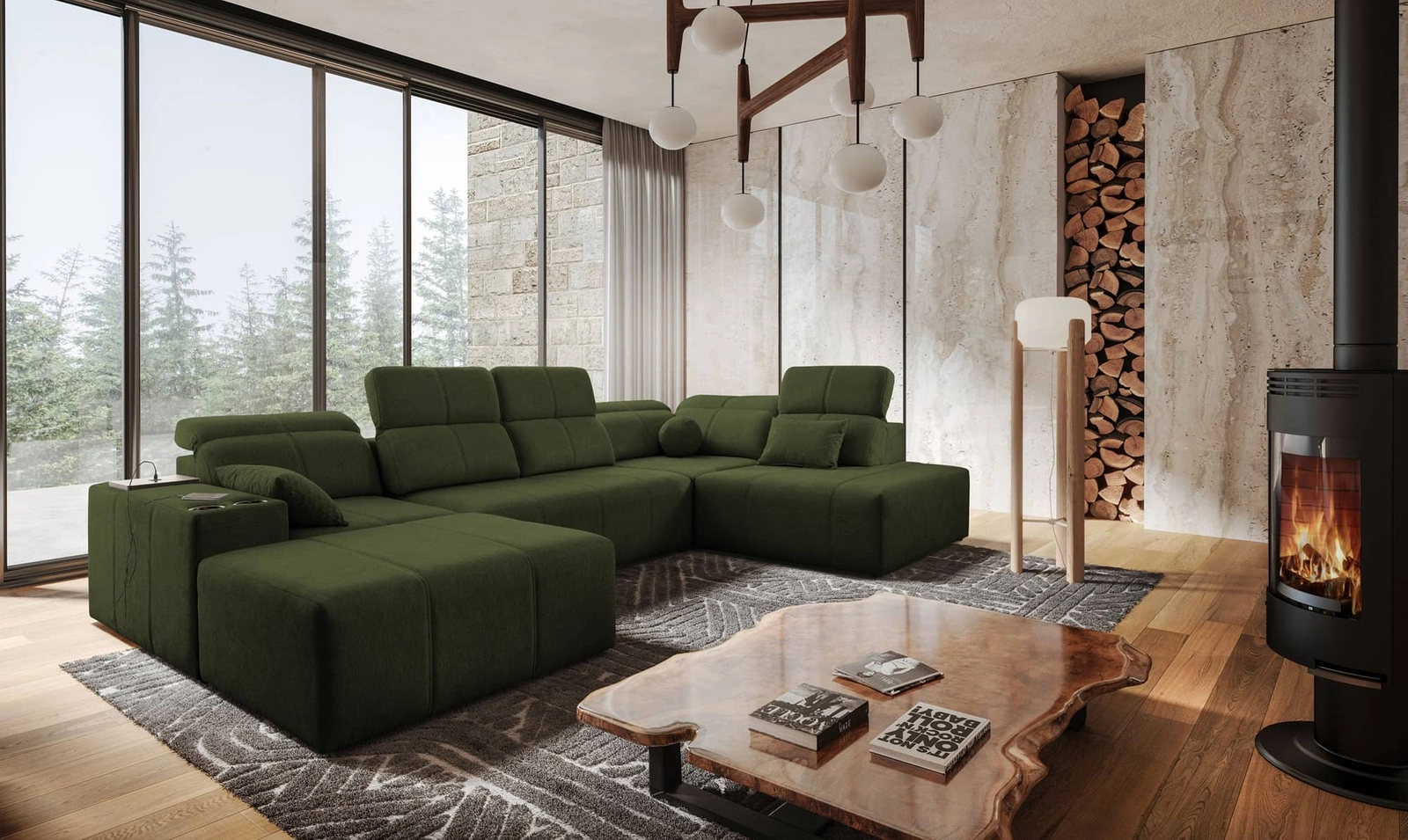 Ecksofa Thessaly VI in Grün ist ein äußerst funktionelles Möbelstück mit einer stilvollen Oberfläche.