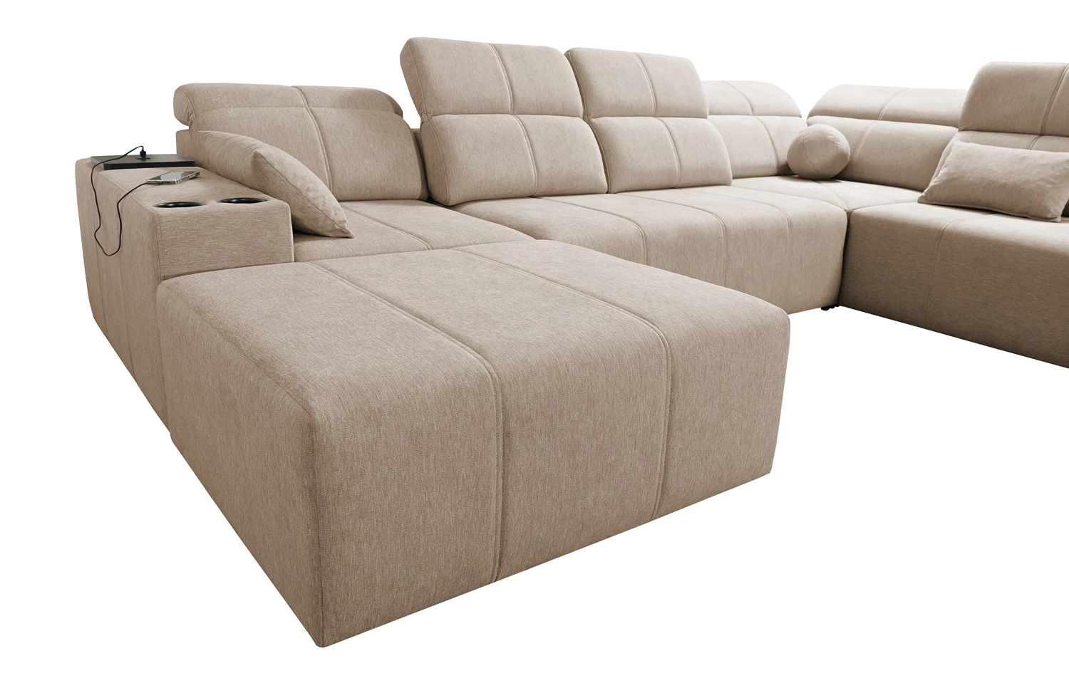 Die USB-Ladebuchse, die Getränkehalter, die verstellbaren Rückenlehnen zur Anpassung der Sitztiefe und die zwei Bettzeugbehälter sind Zubehörteile dieses Möbels, die alle Benutzer schätzen werden.