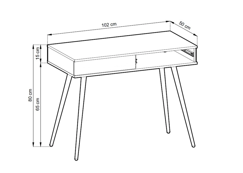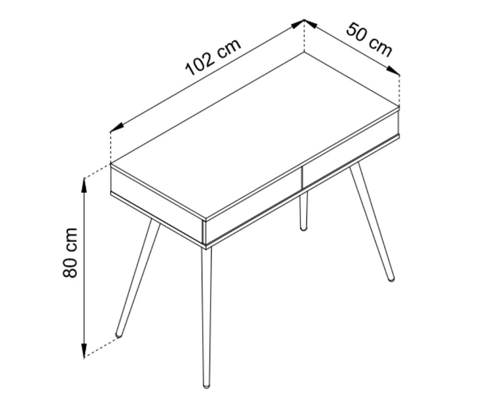 Die Möbel bestehen aus 2 Schubladen mit Vollauszugsystem. Konsole für den Hausflur ist aus hochwertigem laminiertem Karton, die sehr widerstandsfähig gegen äußere Einflüsse ist. Die Schubladen des Schminktisches wurden zum Öffnen der griffloses Push-to-Open-System. Dank ihrer Form und Vielseitigkeit ist die Konsole perfekt für den Einsatz als Schminktisch, aber auch als Schreibtisch für das Home Office.