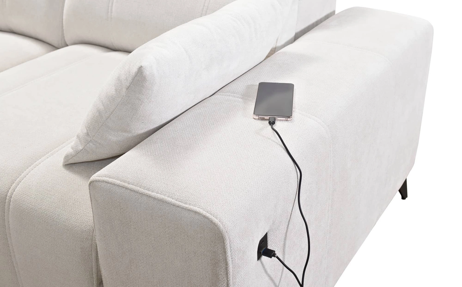 Die Extras dieses Möbels, die alle Nutzer zu schätzen wissen werden, sind die Bettzeugbehälter, die Schlaffunktion und die USB-Ladebuchse an der Seite des Eckschranks.