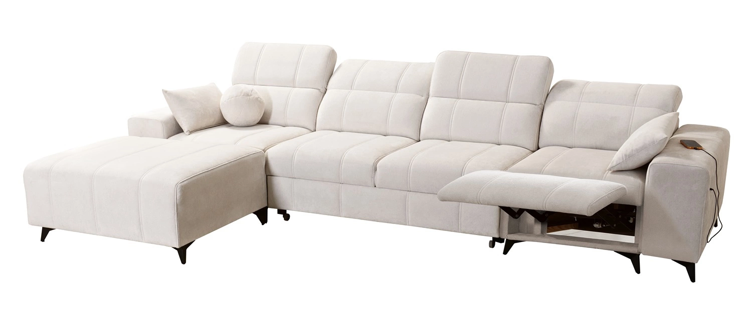 Die von allen Nutzern geschätzten Extras dieses Möbels sind die ausziehbare Fußstütze, der Bettzeugbehälter, die Schlaffunktion und die USB-Ladebuchse in der Seite des Eckmöbels.