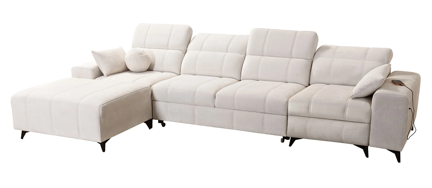 Die von allen Nutzern geschätzten Extras dieses Möbels sind die ausziehbare Fußstütze, der Bettzeugbehälter, die Schlaffunktion und die USB-Ladebuchse in der Seite des Eckmöbels.