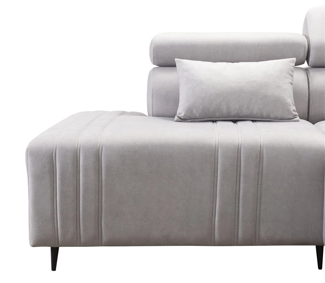 Die Extras dieses Möbels, die alle Benutzer schätzen werden, sind der Bettzeugbehälter, die verstellbaren Kopfstützen und die USB-Ladebuchse an der Seite des Eckmöbels.