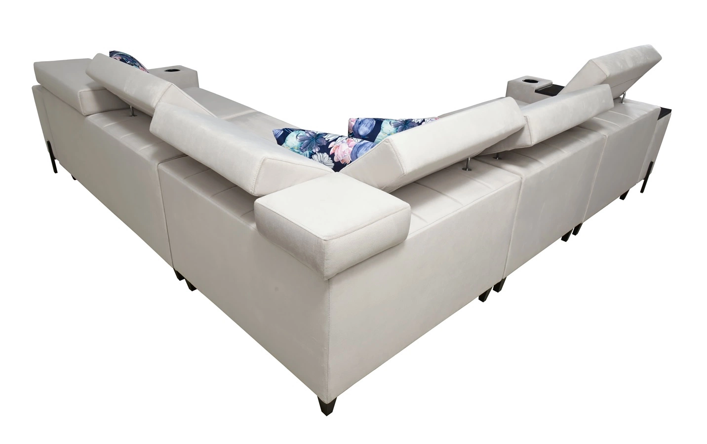 Gewellte Federn und T30-Polyurethanschaum ist das Material, aus dem der Sitz der Ecke hergestellt ist. Feste Rückenlehne mit verstellbaren Kopfstützen ermöglicht eine einfache anpassung sie können die Neigung der Kopfstützen nach Ihren Wünschen einstellen und so für eine bequeme Erholung nach einem langen Tag sorgen, die Sie, Ihre Lieben und auch Ihre Gäste, die auf diesem einzigartigen Ecksofa Platz nehmen, zu schätzen wissen werden!