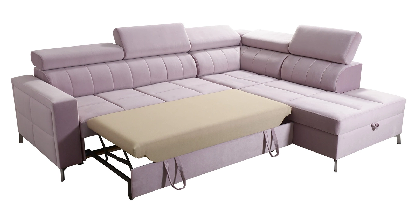 Die Methode zum Entfalten der Eckeinheit ist automatische Maschine vom Typ Delphin, das sich durch eine lange Lebensdauer auszeichnet. Die gesamte Liegefläche lässt sich mit einem Handgriff ausklappen. Die Möbel sind ausgestattet mit verchromt, metallbeine. Die Rückseite der Möbel wurde zusätzlich mit Holzbeinen verstärkt. Das Eckteil garantiert eine komfortable und störungsfreie Nutzung und eine langjährige Haltbarkeit des gesamten Möbelstücks. Das Ecksofa mit Schlaffunktion eignet sich dank seiner optimalen Abmessungen und seiner breiten Funktionalität ideal als Ecksofa für das Wohnzimmer oder als klappbares Ecksofa für das Gästezimmer. Ein Ecksofa mit Schlaffunktion ist auch eine gute Alternative zu einem Bett im Zimmer der jugendzimmer. Die Wohnzimmerecken aus der Nausa-Kollektion fügen sich perfekt in jede Einrichtung in Ihrem Lieblingsstil ein!
