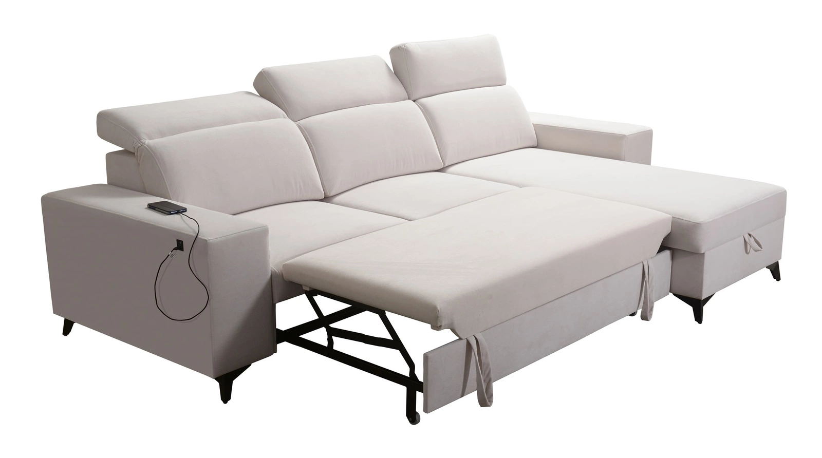 Weitere Merkmale dieses Möbelstücks, die von allen Nutzern geschätzt werden, sind ein Bettzeugbehälter, eine Schlaffunktion, eine USB-Buchse an der Seite der Ecke zum Aufladen des Telefons und anderer Multimedia-Geräte.