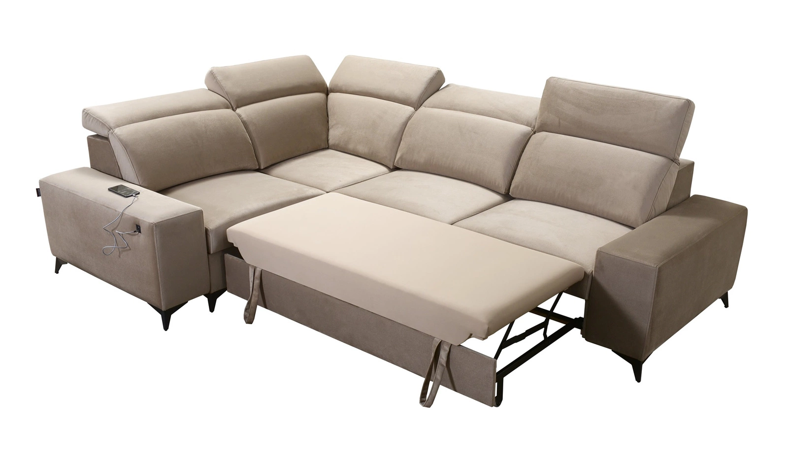 Weitere Merkmale dieses Möbelstücks, die von allen Nutzern geschätzt werden, sind ein Bettzeugbehälter, eine Schlaffunktion, eine USB-Buchse an der Seite der Ecke zum Aufladen des Telefons und anderer Multimedia-Geräte.