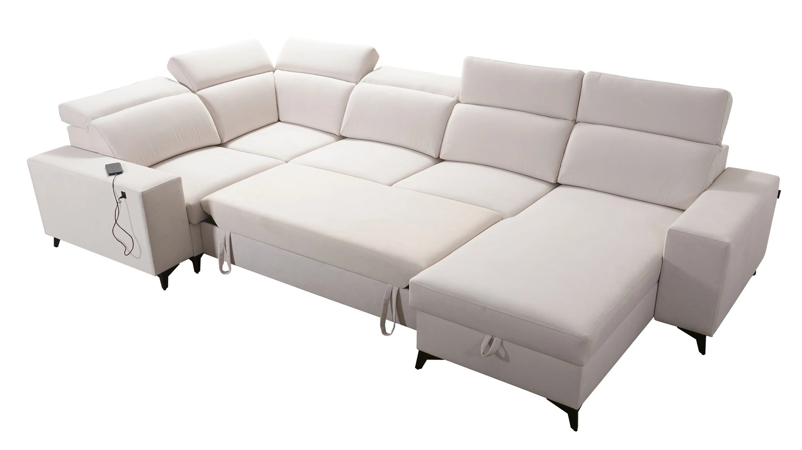 Weitere Merkmale dieses Möbelstücks, die von allen Nutzern geschätzt werden, sind Bettzeugbehälter, eine Schlaffunktion, eine USB-Buchse an der Seite der Ecke zum Aufladen des Telefons und anderer Multimedia-Geräte.