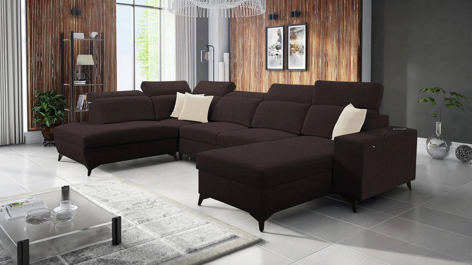 Ecksofa mit Schlaffunktion Kelly Sleek VI braun rechte Seite modernes Design Ecksofa für Wohnzimmer mit verstellbaren Kopfstützen