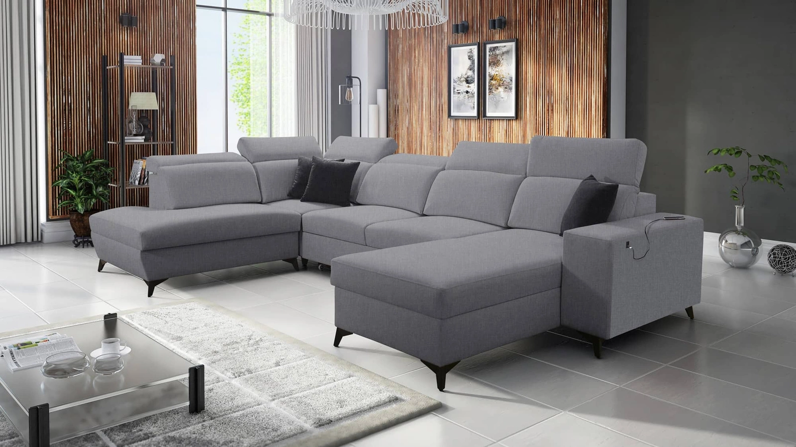 Ecksofa mit Schlaffunktion Kelly Sleek VI grau rechts modernes Design Ecksofa für Wohnzimmer mit verstellbaren Kopfstützen