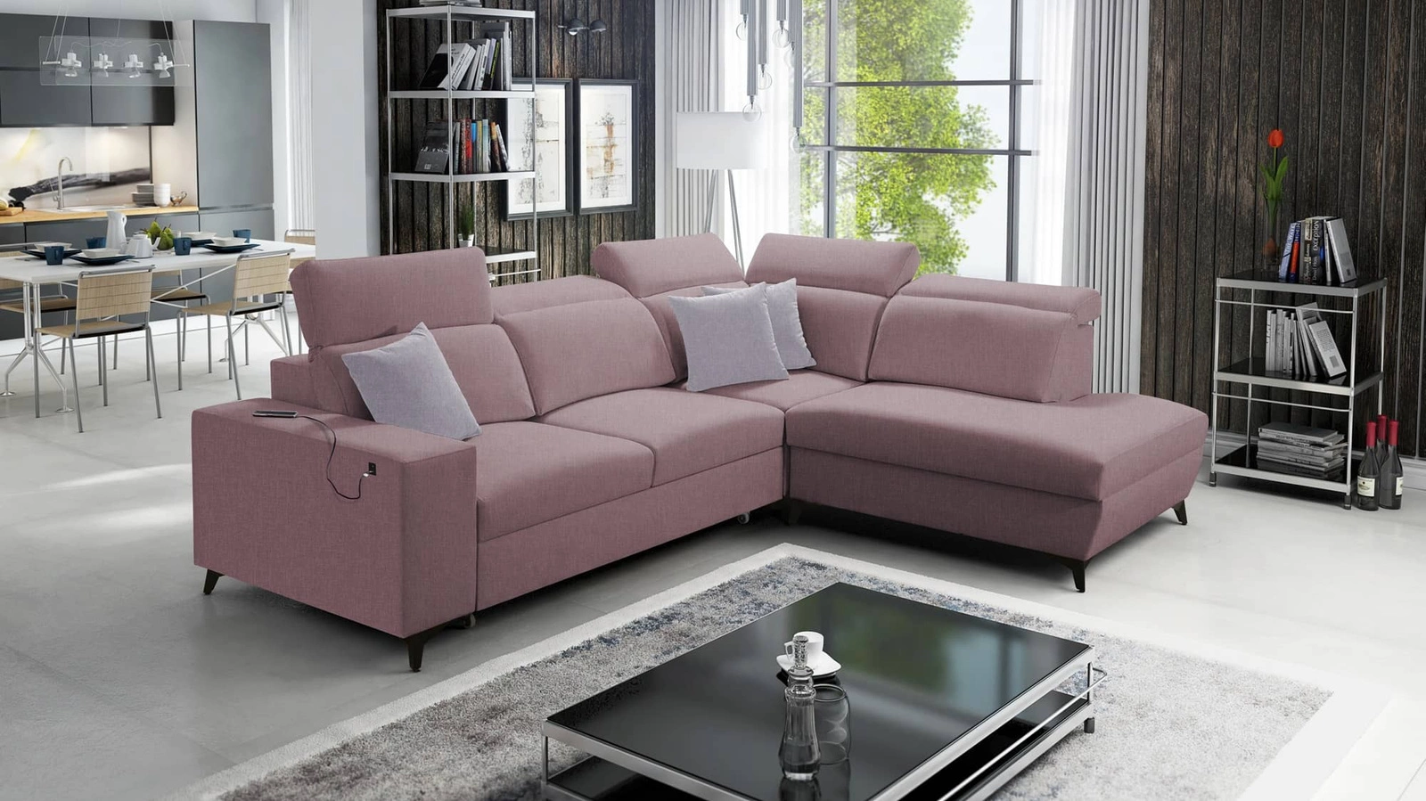 Kelly Sleek Ecksofa VII in Lavendelrosa mit verstellbaren Kopfstützen ist ein Rezept für ein modernes Interieur in Ihrem Haus!