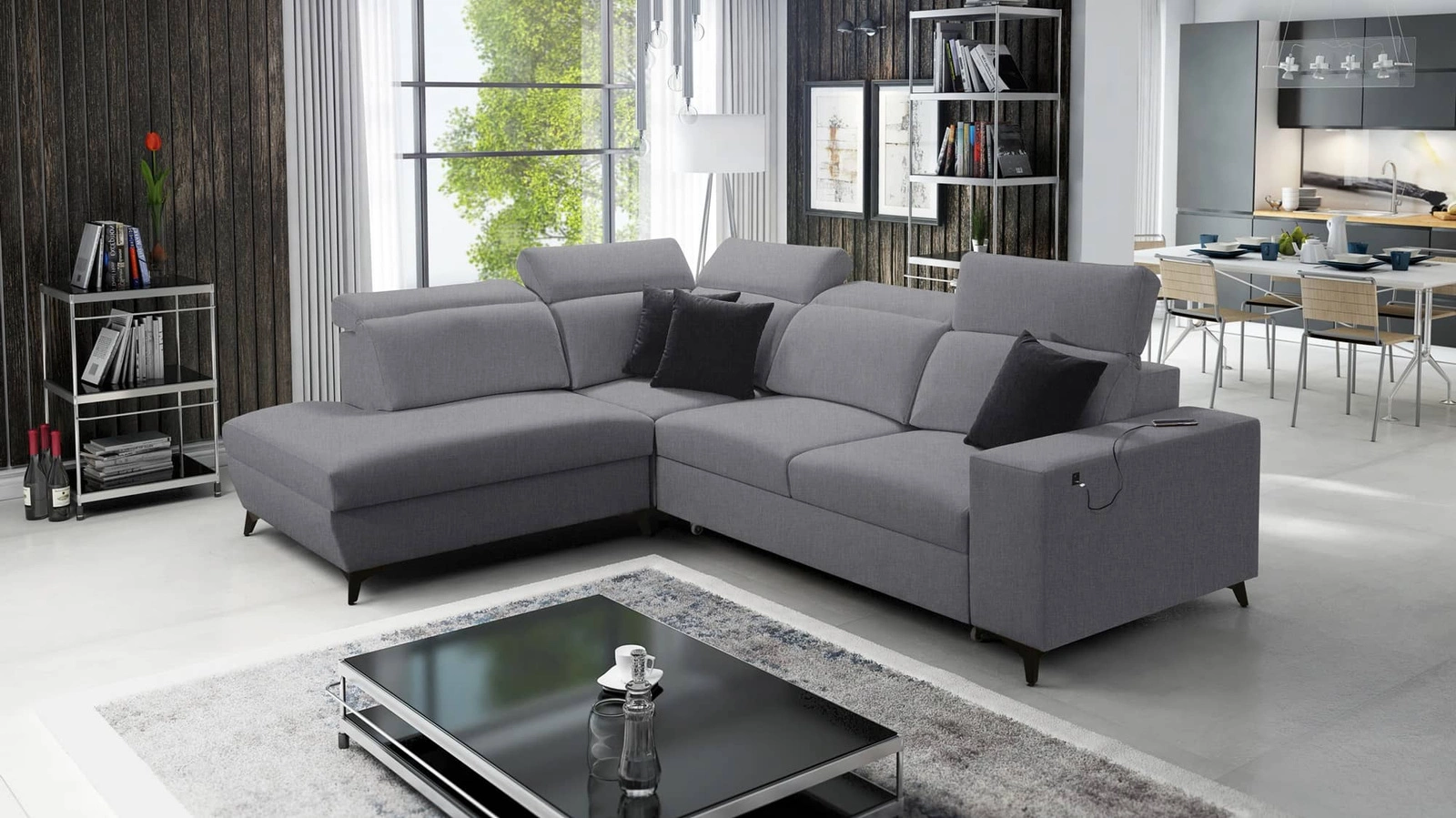 Kelly Sleek Ecksofa VII in Grau mit verstellbaren Kopfstützen ist ein Rezept für ein modernes Interieur in Ihrem Zuhause!