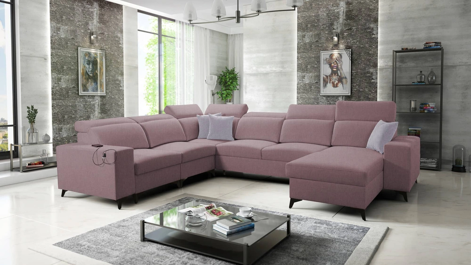 Kelly Sleek Ecksofa VIII in Lavendelrosa mit verstellbaren Kopfstützen ist ein Rezept für ein modernes Interieur in Ihrem Haus.