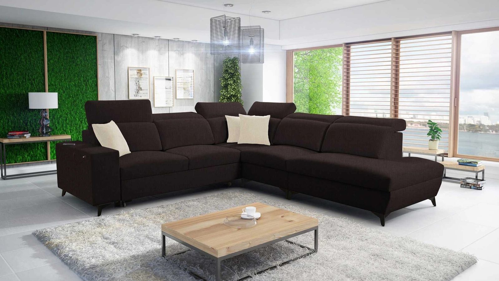 Ecksofa mit Schlaffunktion Kelly Sleek IX braun rechtsseitig stilvolles Ecksofa mit bequemen Armlehnen und verstellbaren Kopfstützen
