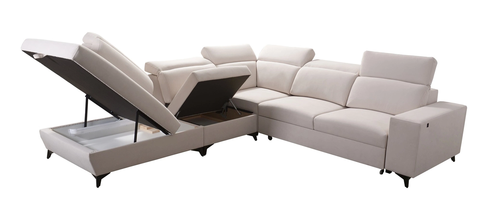 Weitere Merkmale dieses Möbelstücks, die von allen Nutzern geschätzt werden, sind Bettzeugbehälter, eine Schlaffunktion, eine USB-Buchse an der Seite der Ecke zum Aufladen des Telefons und anderer Multimedia-Geräte.