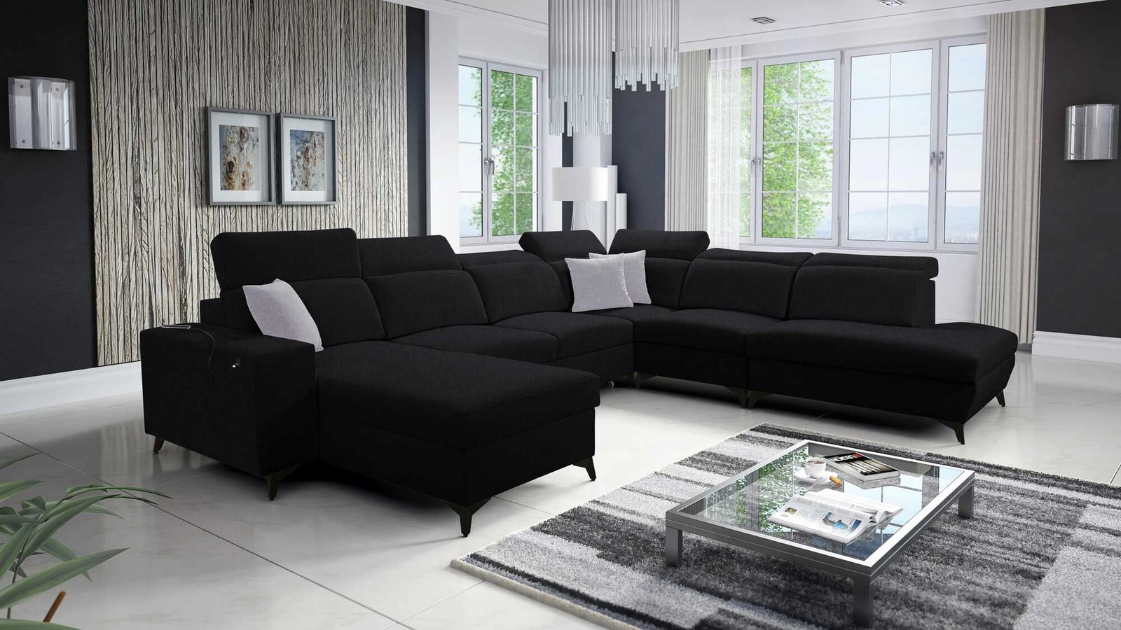 Kelly Sleek Ecksofa X in Schwarz mit verstellbaren Kopfstützen ist ein Rezept für ein modernes Interieur in Ihrem Zuhause.