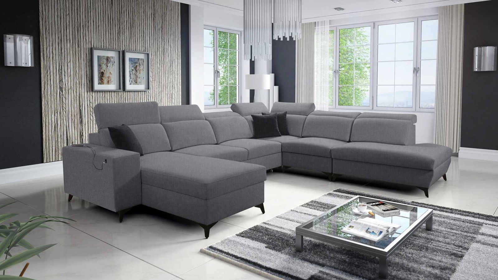 Ecksofa mit Schlaffunktion Kelly Sleek X grau linkes extrem elegantes Ecksofa für Wohnzimmer mit verstellbaren Kopfstützen