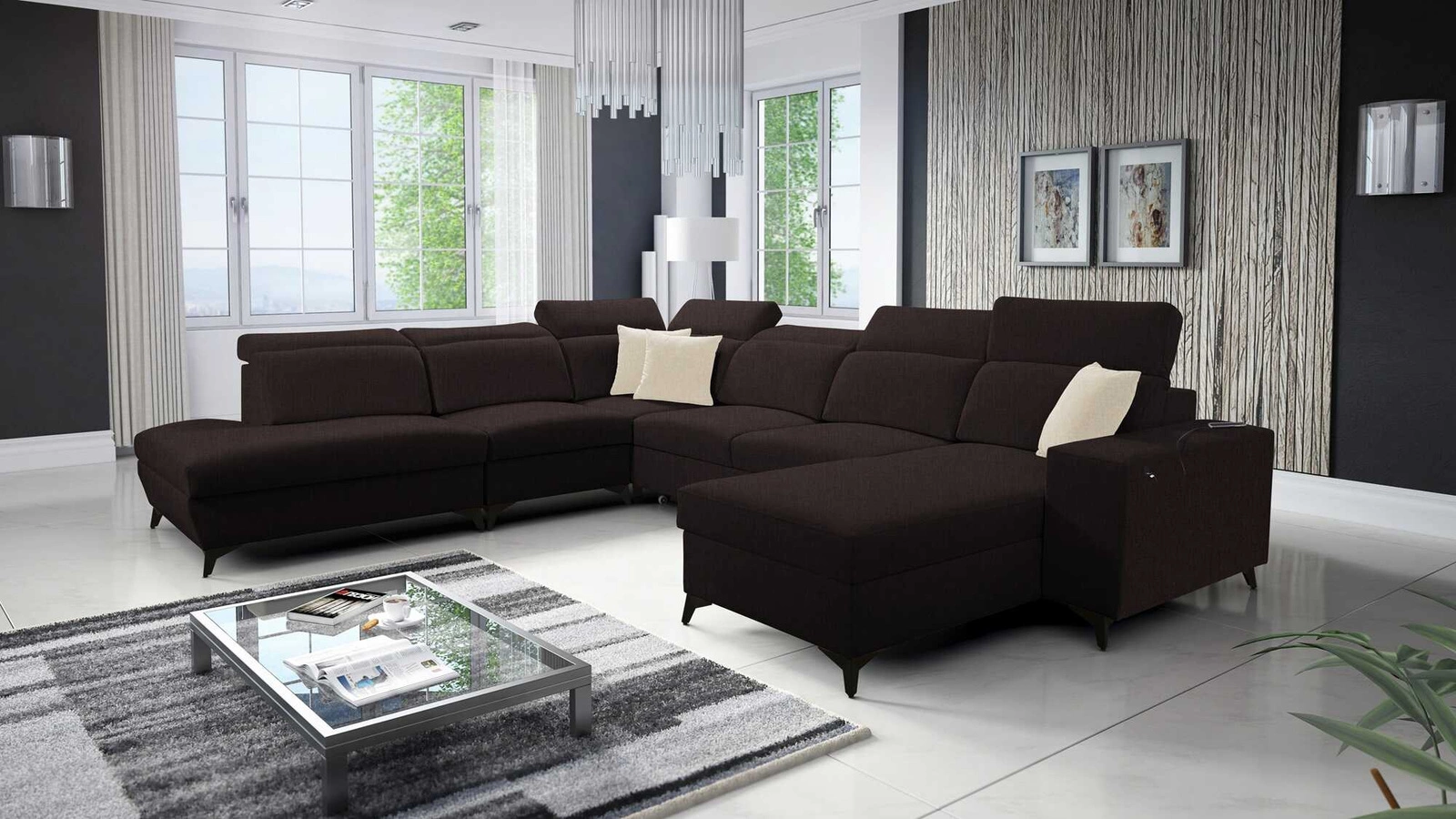 Ecksofa mit Schlaffunktion Kelly Sleek X braun rechts extrem elegantes Ecksofa für Wohnzimmer mit verstellbaren Kopfstützen