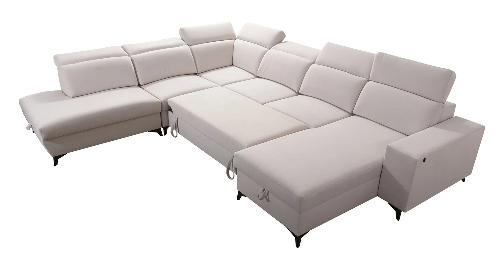 Weitere Merkmale dieses Möbelstücks, die von allen Nutzern geschätzt werden, sind Bettzeugbehälter, eine Schlaffunktion, eine USB-Buchse an der Seite der Ecke zum Aufladen des Telefons und anderer Multimedia-Geräte.