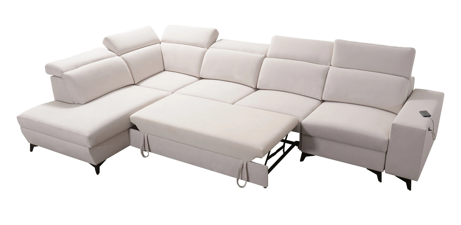 Weitere Merkmale dieses Möbelstücks, die von allen Nutzern geschätzt werden, sind Bettzeugbehälter, eine Schlaffunktion, eine USB-Buchse an der Seite der Ecke zum Aufladen des Telefons und anderer Multimedia-Geräte.