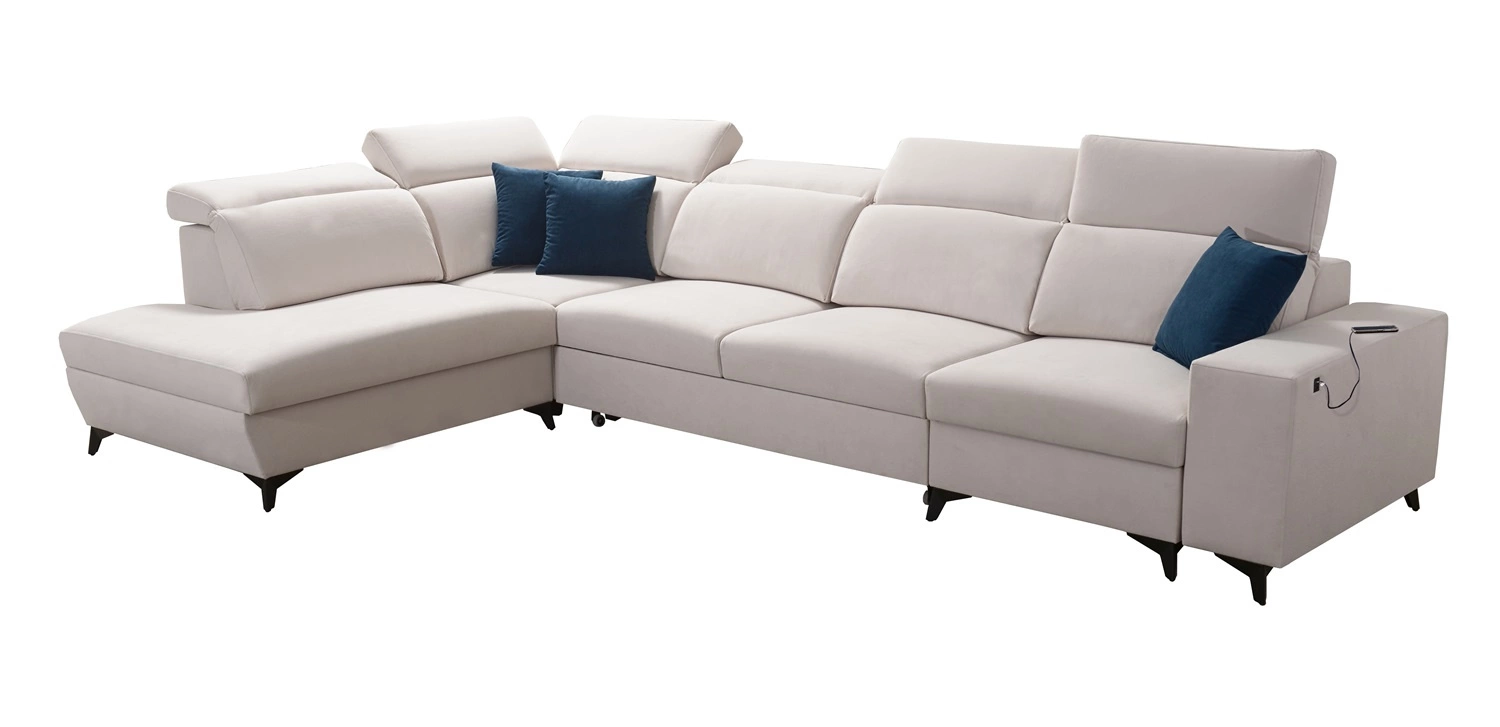 Weitere Merkmale dieses Möbelstücks, die von allen Nutzern geschätzt werden, sind Bettzeugbehälter, eine Schlaffunktion, eine USB-Buchse an der Seite der Ecke zum Aufladen des Telefons und anderer Multimedia-Geräte.
