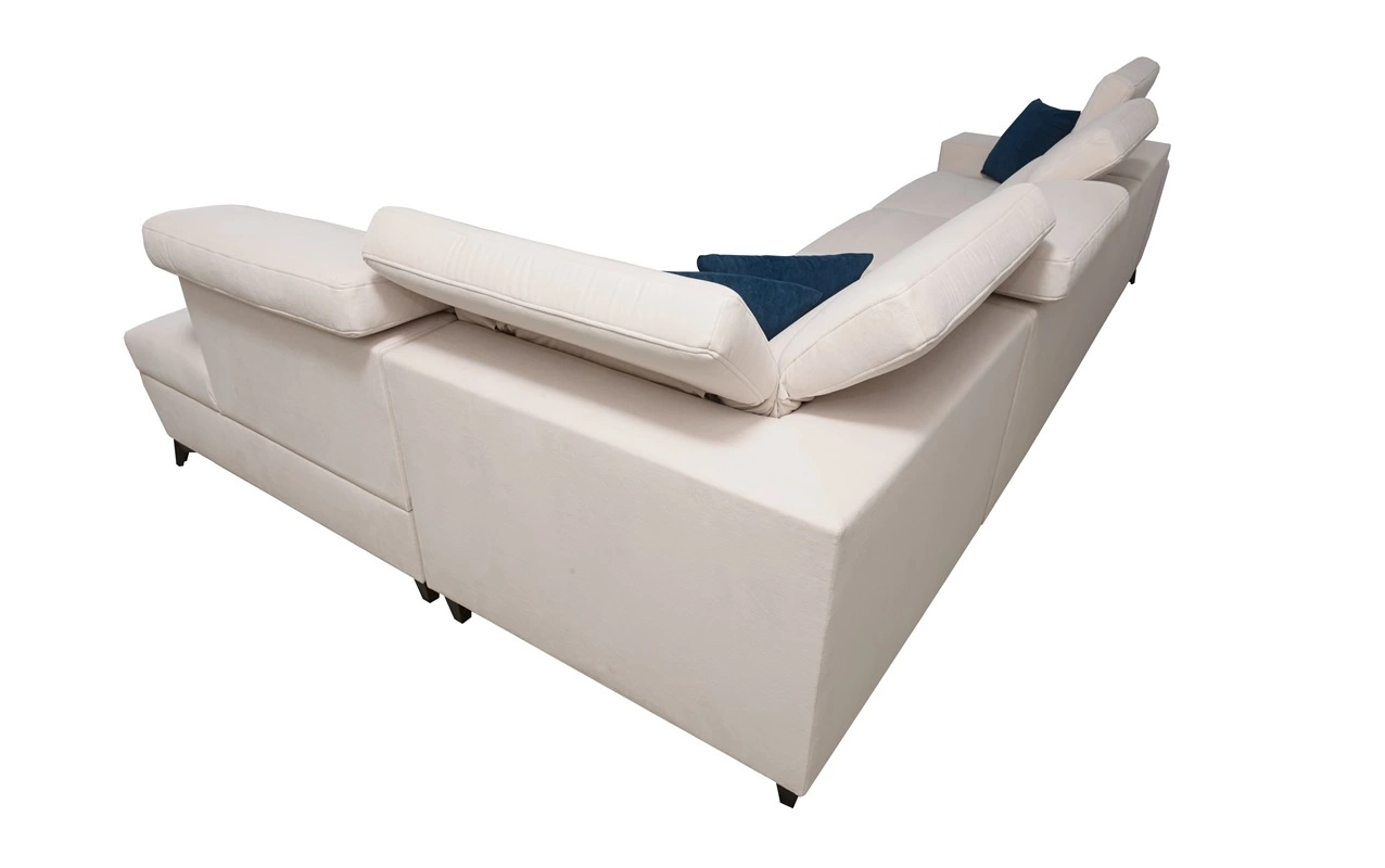 Die Abmessungen der Möbel ermöglichen füllung eines geräumigen Wohnzimmers oder Sitzungssaals. Breite der Ecke 359 cm, maximale Höhe 101 cm und Tiefe 224 cm. Die Liegefläche des Eckschrankes beträgt 122x202 cm. Die Sitzhöhe des Möbels beträgt 48 cm und die maximale Höhe der Rückenlehne beträgt 61 cm. Gewellte Federn und T30-Polyurethanschaum ist das Material, aus dem der Sitz der Ecke hergestellt ist. Feste Rückenlehne mit verstellbaren Kopfstützen garantiert komfortable Entspannung nach einem langen Tag, die Sie, Ihre Lieben und auch Gäste, die auf diesem einzigartigen Ecksofa sitzen, zu schätzen wissen werden.