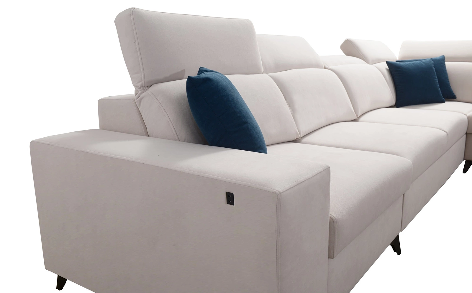Weitere Merkmale dieses Möbelstücks, die von allen Nutzern geschätzt werden, sind Bettzeugbehälter, eine Schlaffunktion, eine USB-Buchse an der Seite der Ecke zum Aufladen des Telefons und anderer Multimedia-Geräte.