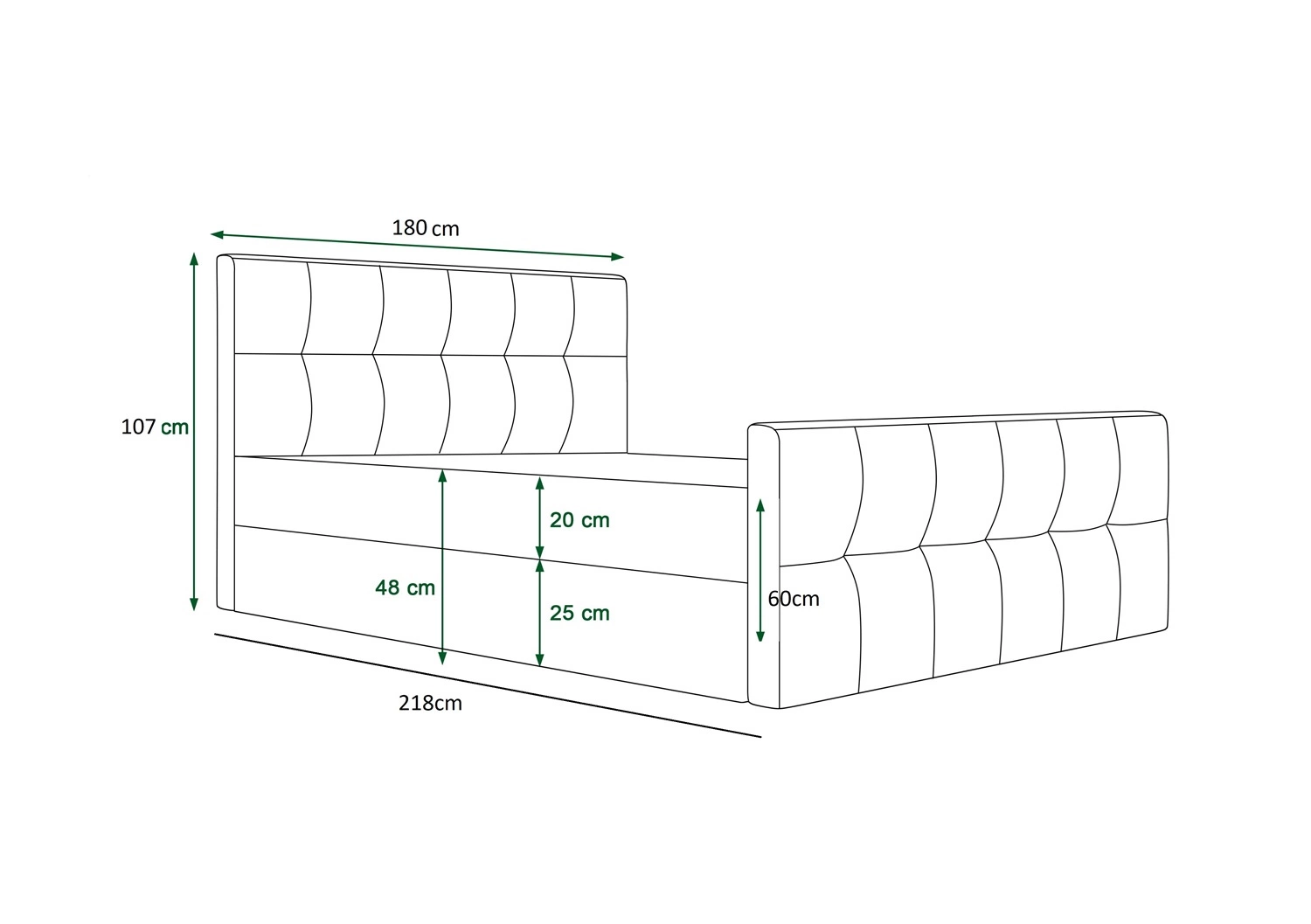 Bett aus Stoff typ samt Monolith 70 garantiert ein Höchstmaß an Komfort und Funktionalität für die tägliche Entspannung im Schlafzimmer. Der Stoff hat eine Beschichtung aus hydrophob, was eine begrenzte Flüssigkeitsaufnahme gewährleistet. Die interessante Struktur des Gewebes verleiht einen einzigartigen Charakter. Dank der Eigenschaften des verwendeten Stoffes behält das kontinentale Bett lange Zeit sein ursprüngliches Aussehen. Das Design des Bettes bietet große Stabilität und Komfort bei der Benutzung. Der Rahmen des kontinentalen Bettes ist aus Holz und einer Möbelplatte gefertigt. Gesteppt das Kopfteil ist ein Blickfang und verleiht dem Bett einen besonderen Charakter. Ein weiterer Vorteil ist das Fußteil, das mit der gleichen Steppung wie das Kopfteil versehen ist.