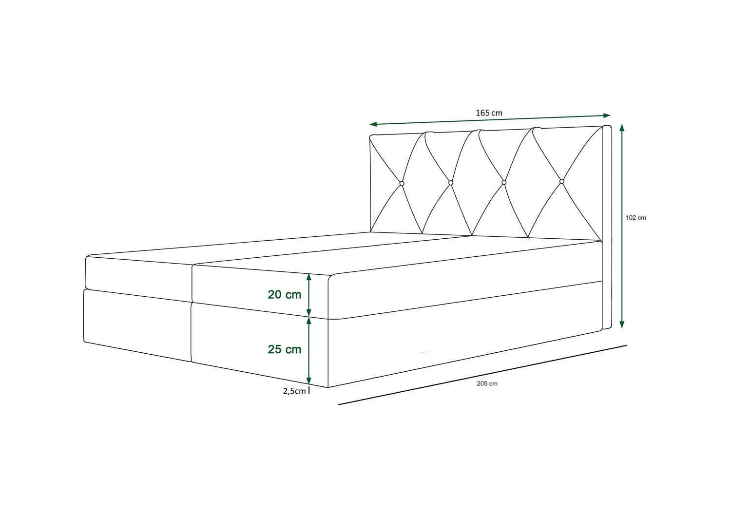 Bett aus Stoff typ samt Monolith 02 garantiert ein Höchstmaß an Komfort und Funktionalität für die tägliche Entspannung im Schlafzimmer. Der Stoff hat eine Beschichtung aus hydrophob, was eine begrenzte Flüssigkeitsaufnahme gewährleistet. Die interessante Struktur des Gewebes verleiht einen einzigartigen Charakter. Dank der Eigenschaften des verwendeten Stoffes behält das kontinentale Bett lange Zeit sein ursprüngliches Aussehen. Das Design des Bettes bietet große Stabilität und Komfort bei der Benutzung. Der Rahmen des kontinentalen Bettes ist aus Holz und einer Möbelplatte gefertigt. Zart gesteppt das Kopfteil ist ein Blickfang und verleiht dem Bett einen besonderen Charakter.