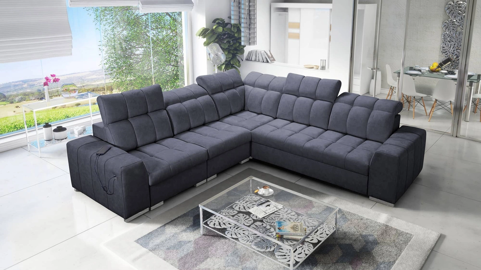 Details zum modernen Ecksofa Luigi III mit Schlaffunktion