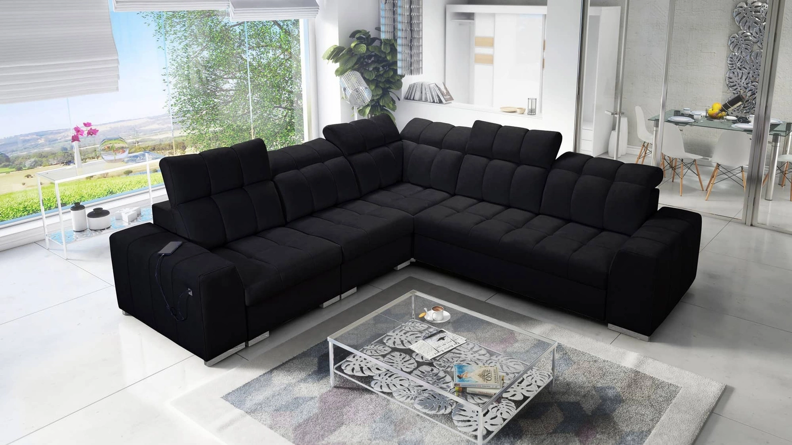 Ecksofa Luigi III in schwarz mit verstellbaren Kopfstützen ist ein reizvolles Möbelstück mit der Garantie für höchsten Komfort und Funktionalität.